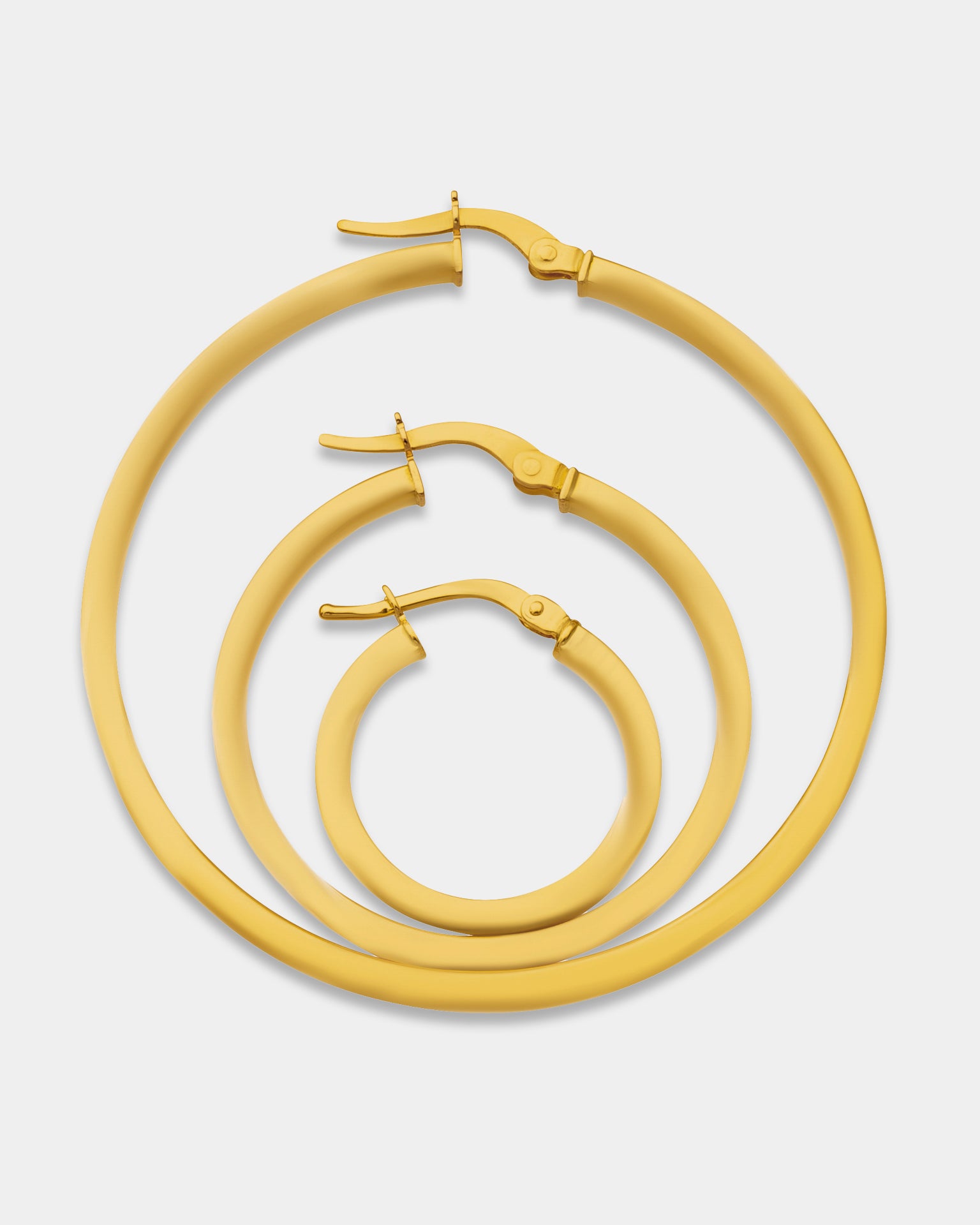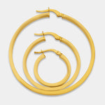 Aros de oro amarillo 18K con grosor de tubo redondo de 3mm y pesos aproximados de 1.50-3.10gr